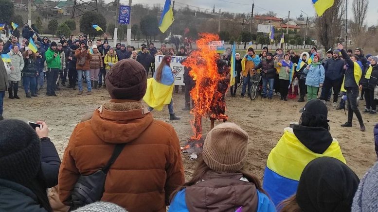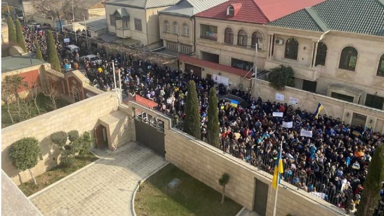 Массовая стихийная акция поддержки Украине перед посольством в Баку